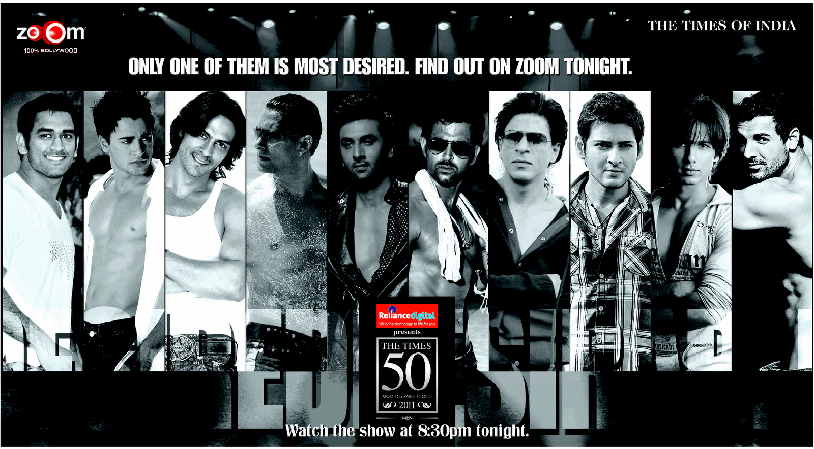 Here is the list. 1. Salman Khan 2. Ranbir Kapoor 3. Hrithik Roshan 4. John Abraham 5. Mahesh Babu 6. M S Dhoni 7. SRK 8. Shahid Kapoor 9. Imran Khan 10. Arjun Rampal |