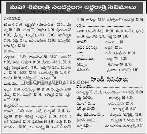Sivarathri special shows in Hyd